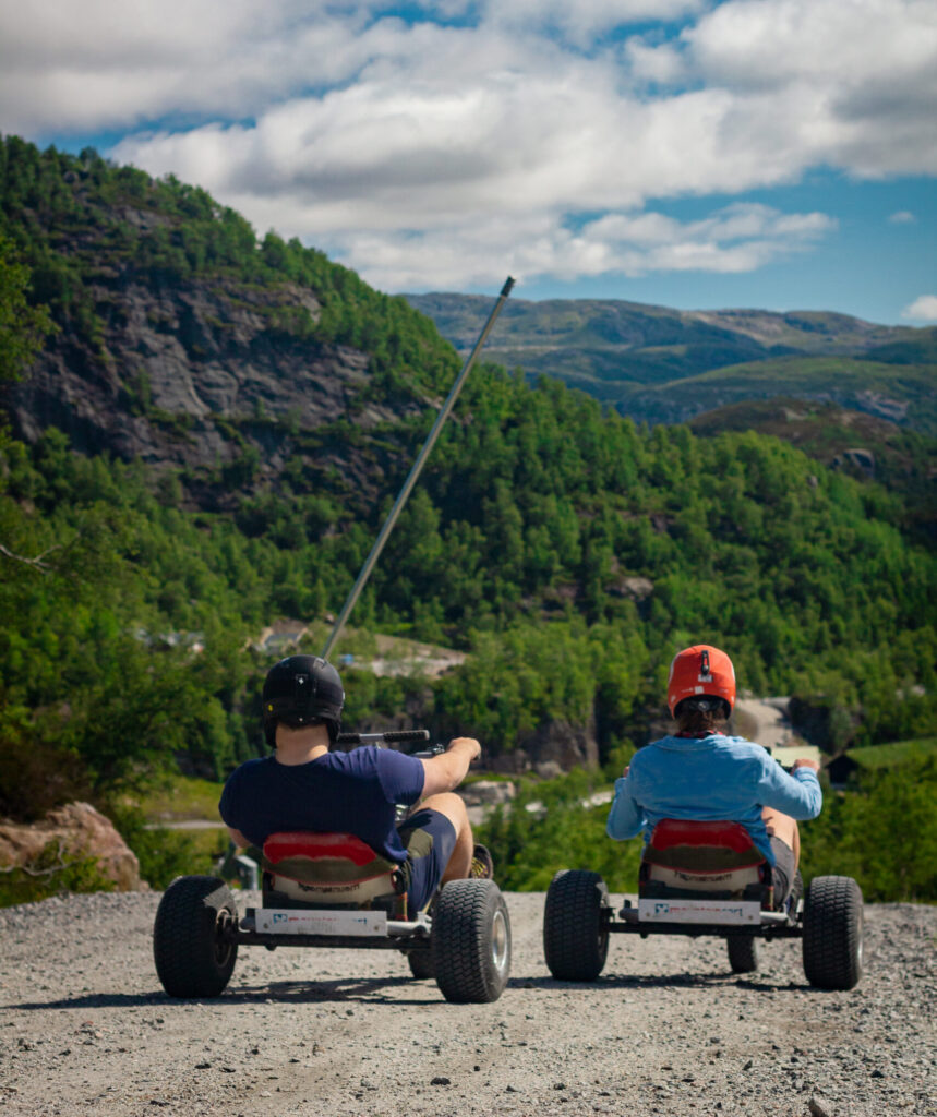 Mountain Cart er en morsom og spennende aktivitet for hele familien! Aktiviteten krever ingen forkunnskaper og er like gøy for både voksne og barn. Mountain Cart er en trehjulssykkel med bremser på begge bakhjul, slik at farten enkelt kan tilpasses til egne ønsker, evner og forholdene.