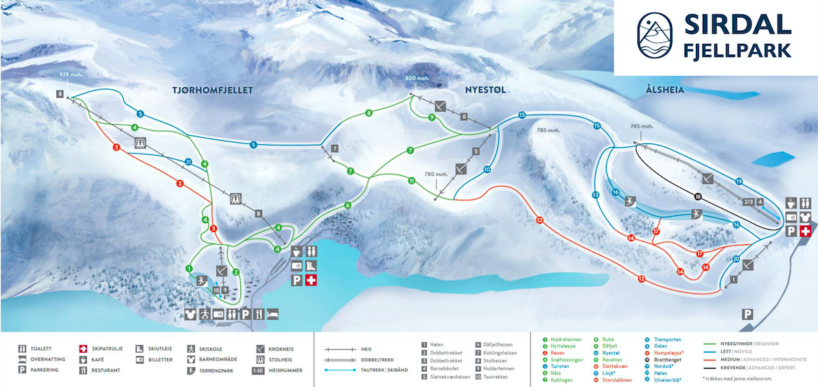 Sirdal Fjellpark includes the areas of Ålsheia and Tjørhomfjellet, and is the largest ski destination in the region with more than 50,000 visitors every year. With us, you get everything in one place: Fresh snow and powder, newly prepared and unique alpine slopes, accommodation, ski rental, ski school and ski park.